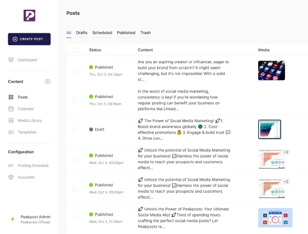 You can schedule posts to auto-publish, or save them as drafts to review and post manually. Your choice.